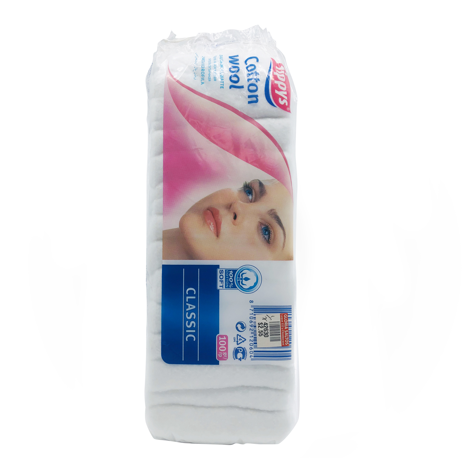 100 g. Algodón hidrófilo zigzag para el cuidado y limpieza.