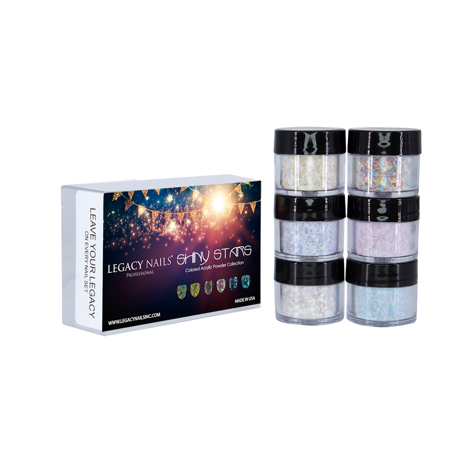 Kit de Polvos Acrílicos x 6 Colores – SHINY STARS – LEGACY NAILS