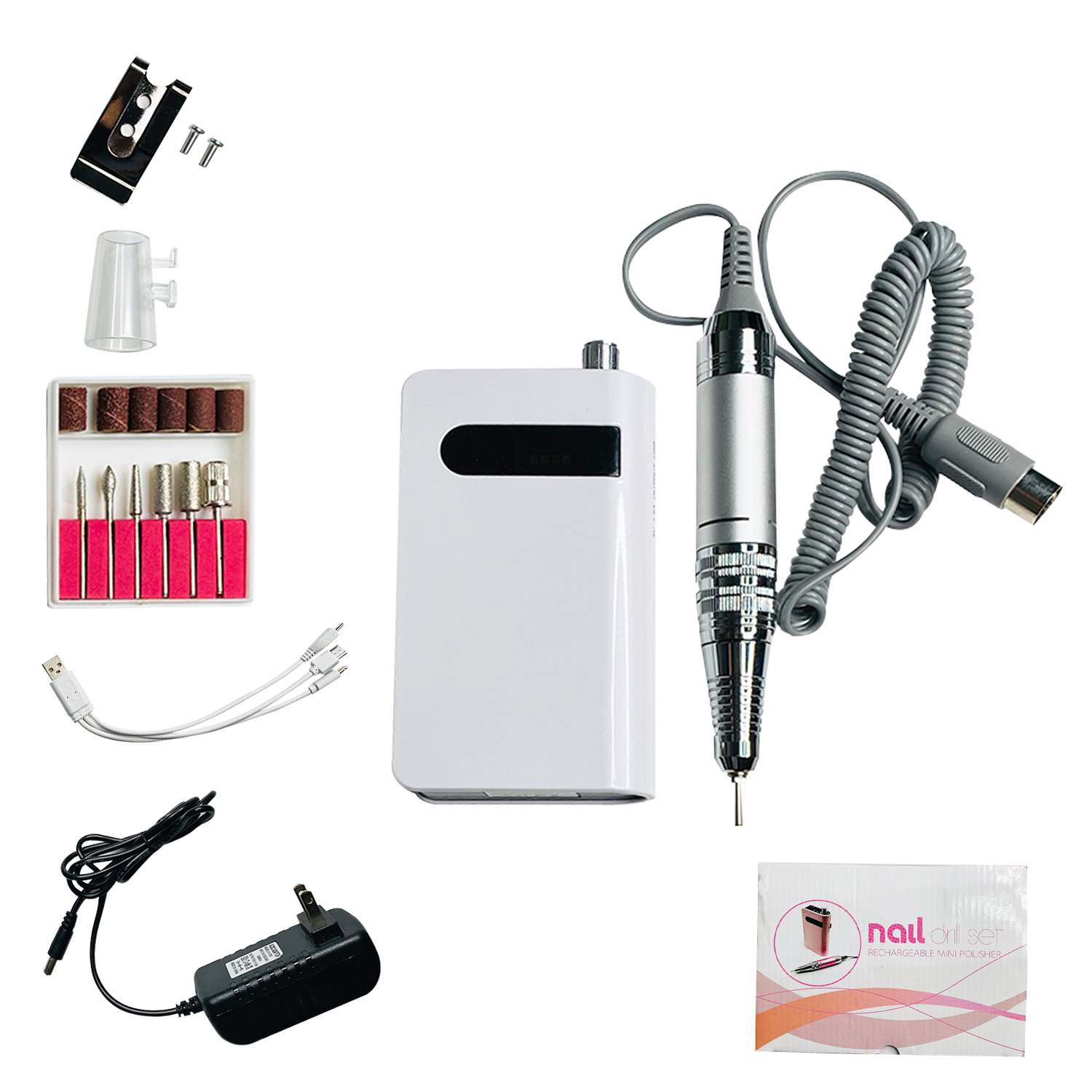 Mini portátil pulidora de uñas eléctrica para manicura y pedicura, con cabezales intercambiables.