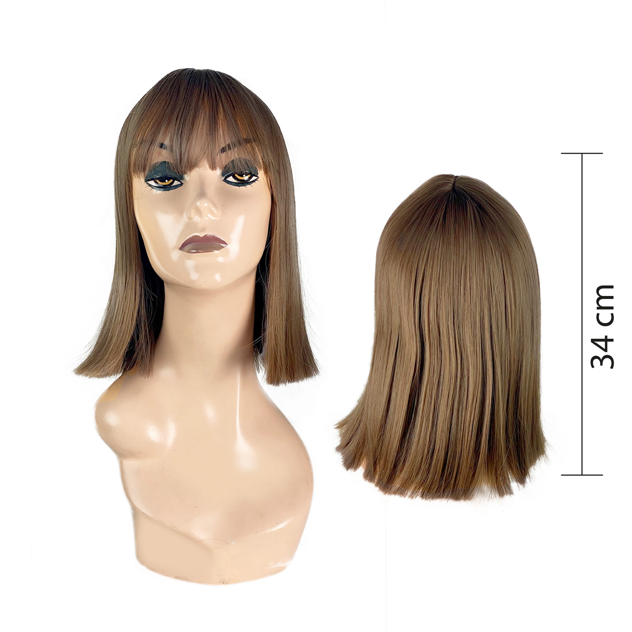 Peluca mediana cabello mixto (sintética/natural) color rubio medio con flequillo.